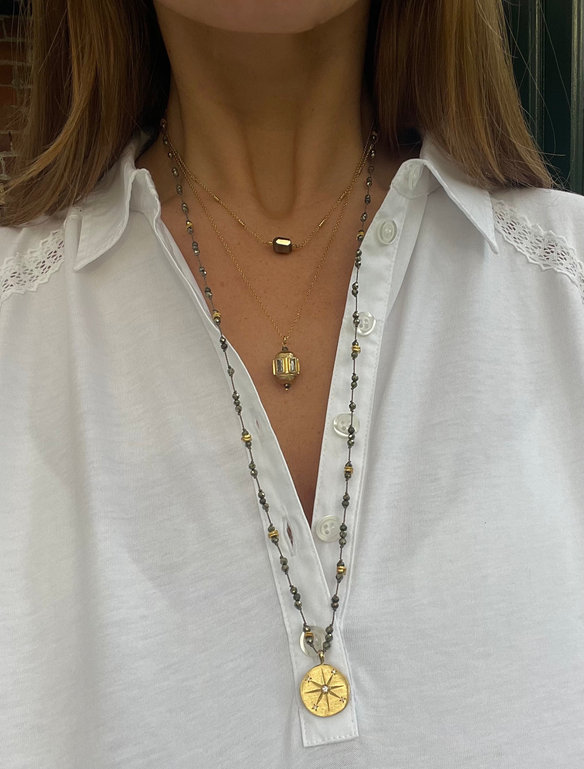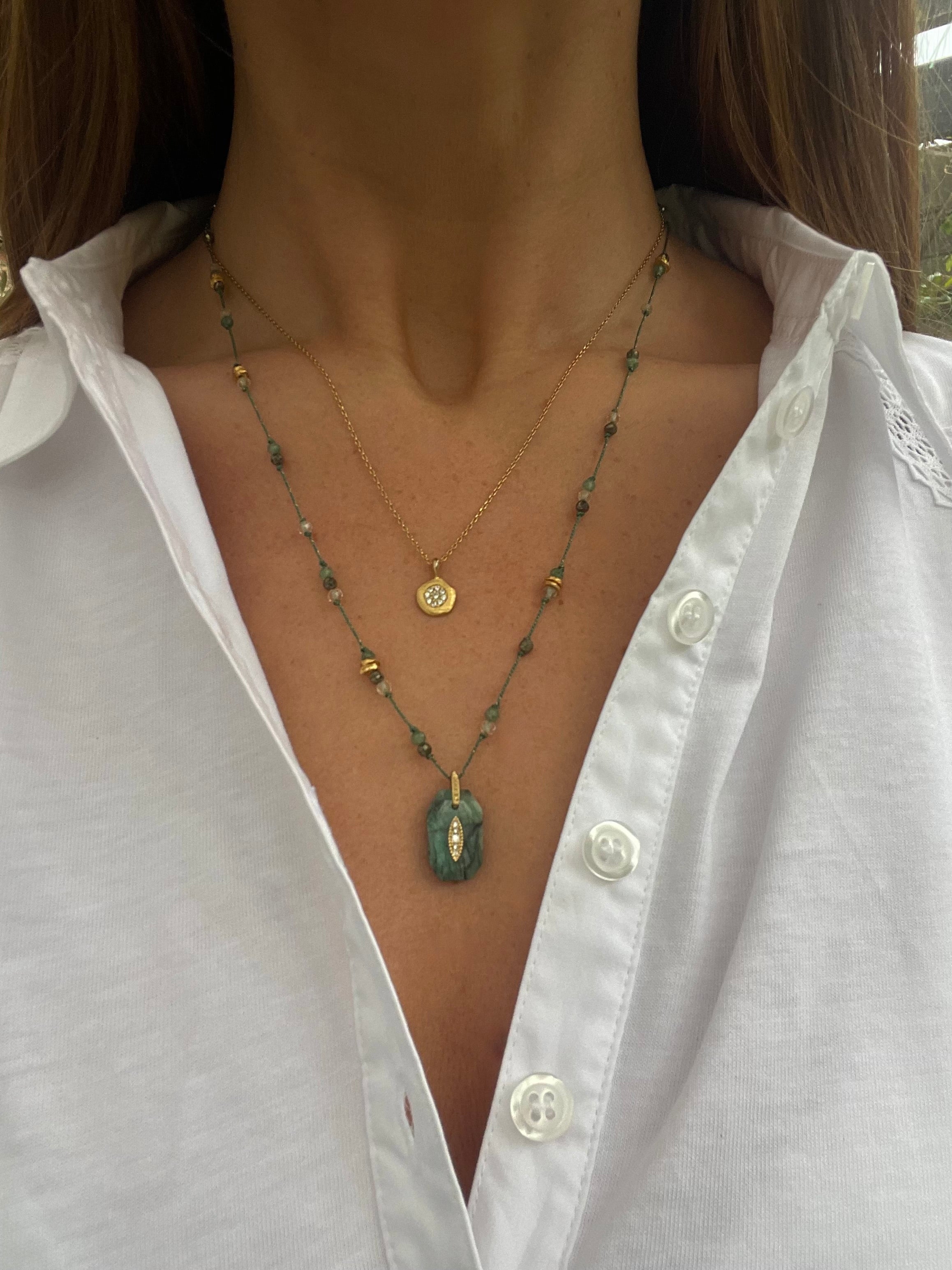 These necklaces all have a rope adjuster as a clasp, just like a cord bracelet clasp. This allows you to pull or tighten the cotton cord to the length you love & change it up from occasion to occasion.