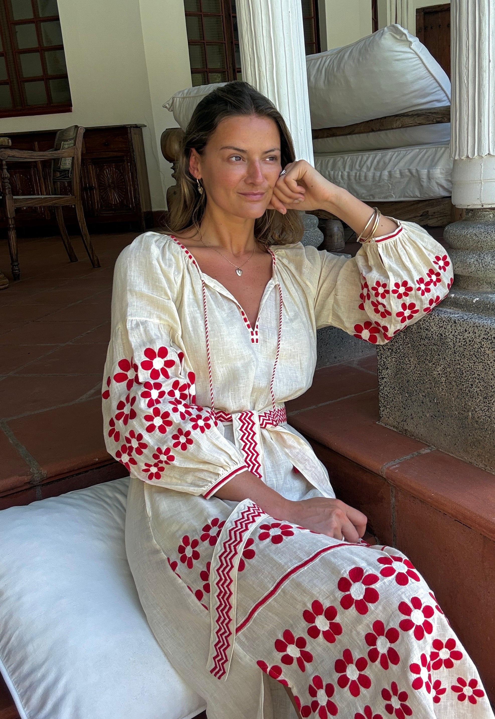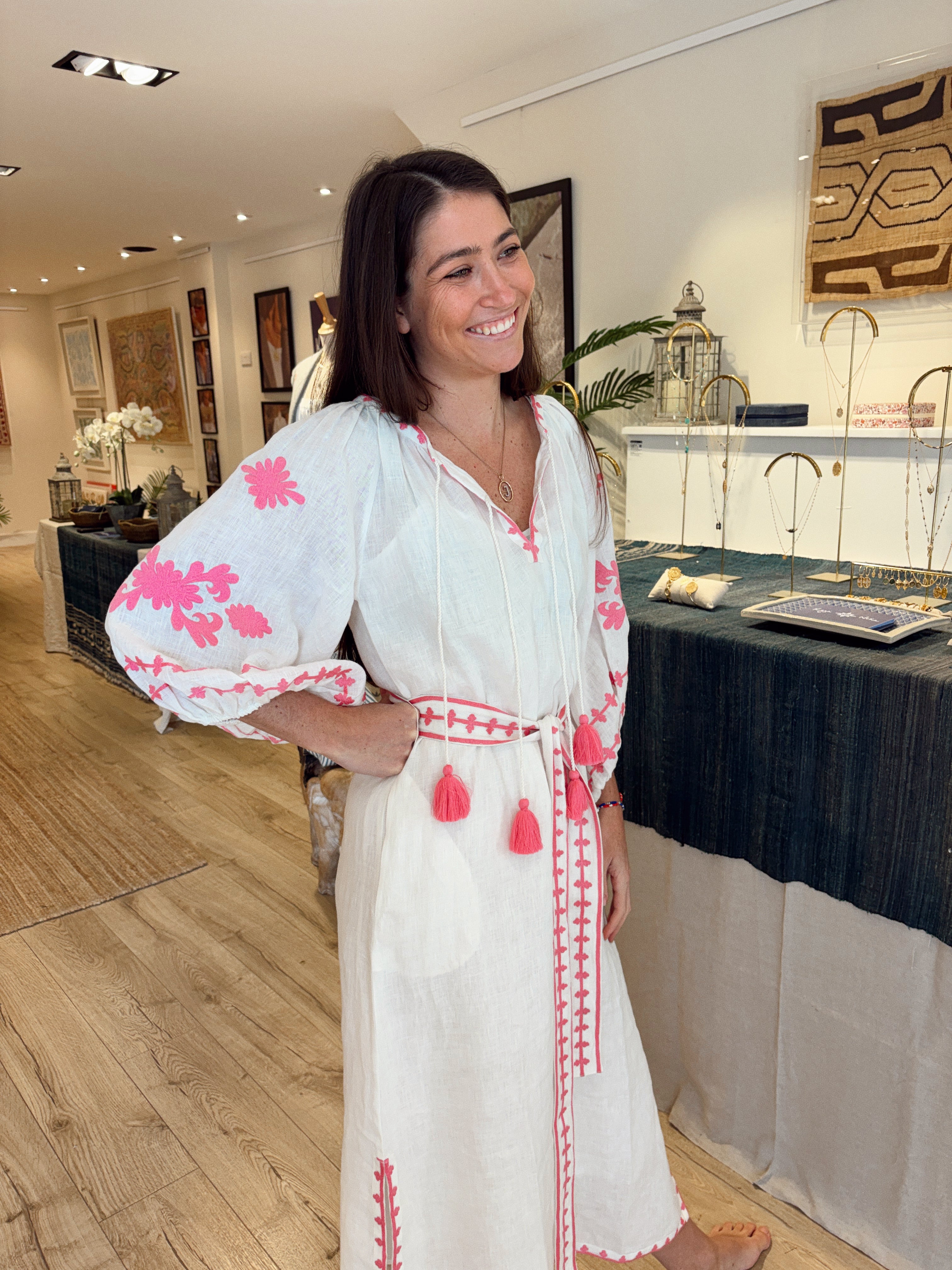 Hand-embroidered, linen & cotton kaftans, meticulously crafted by a cherished family-run business in India, bring you a touch of heritage and a dash of modern flair.