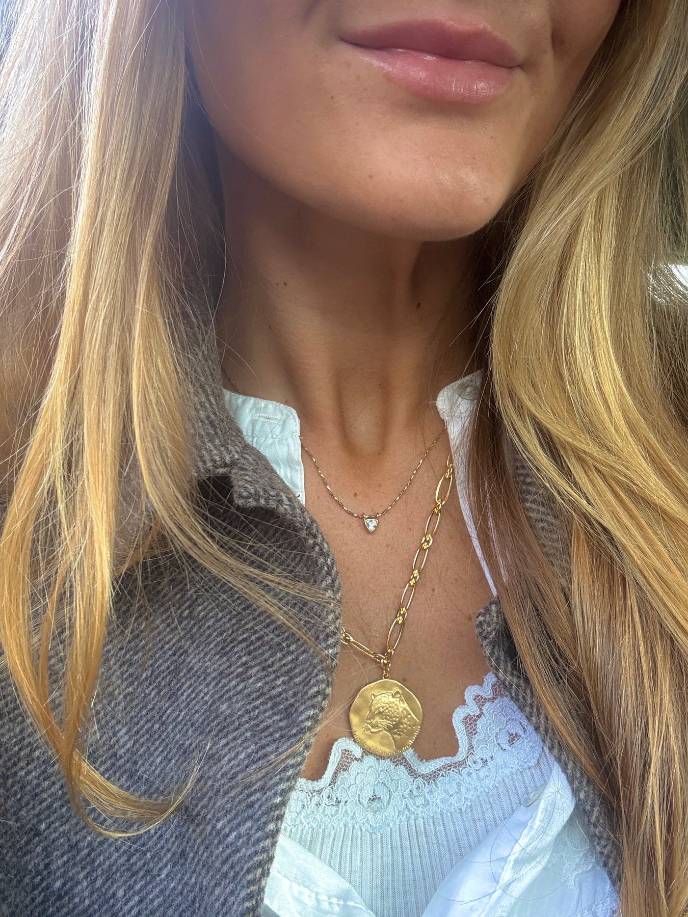 A stand out piece! A beautiful link chain necklace carrying a hand engraved panther head on the medallion. A timeless piece that will carry you through the seasons and will be worn again & again!
